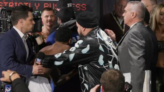After Denys Berinchyk shoves Keyshawn Davis during their stare-down, the two have to be separated in a small scuffle.
